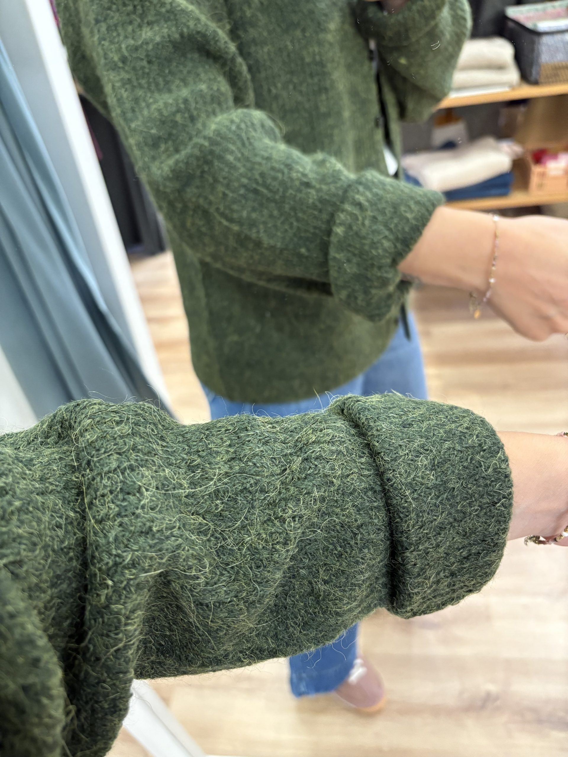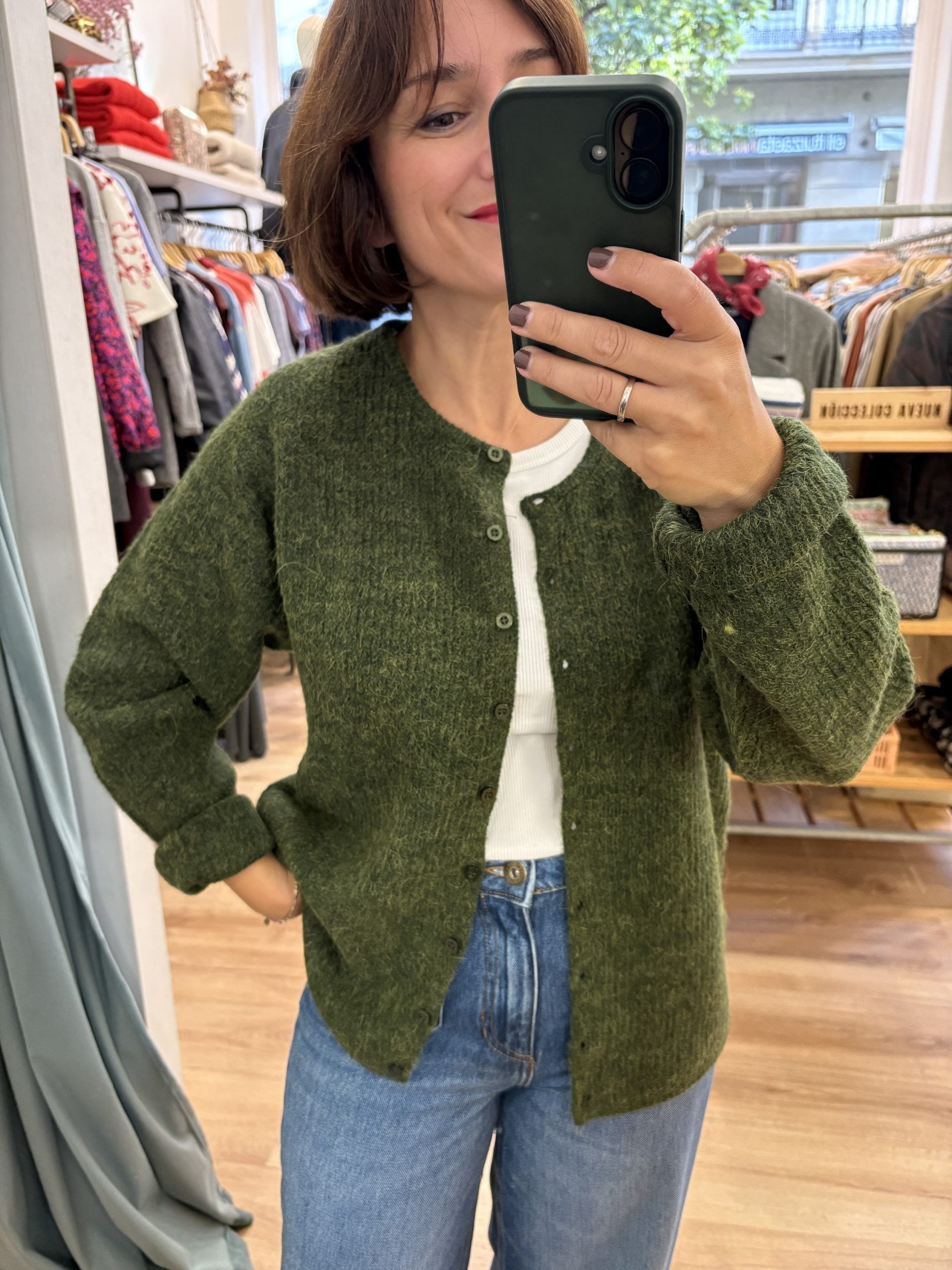 Chaqueta de canalé con textura super gustosa en color oliva. Tallaje amplio.