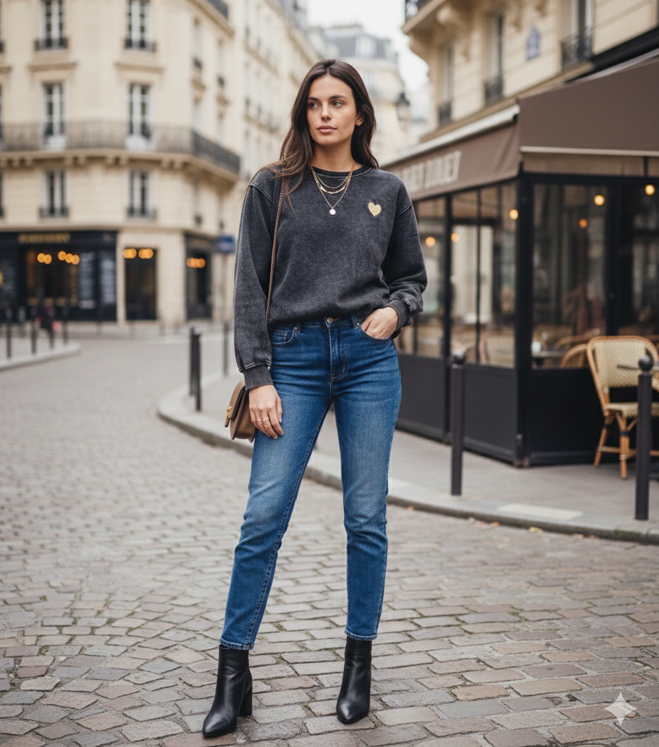 Sudadera de tejifo lavado con corazón bordado. Tallaje peuqeño.