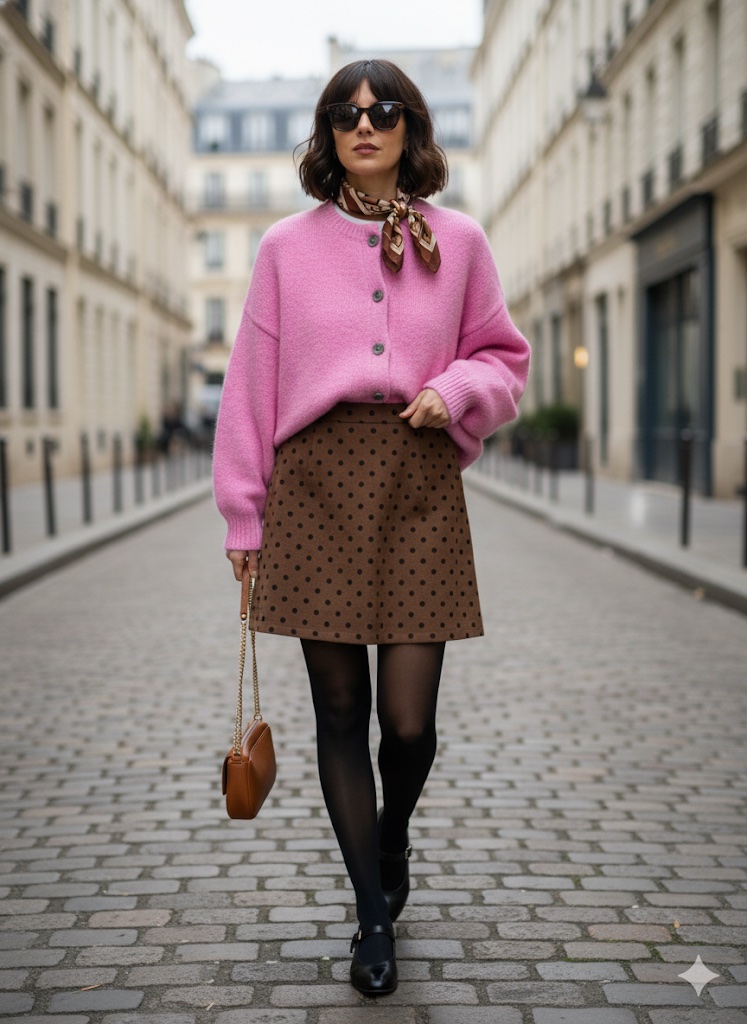 Falda mini de topos en relieve. Tonos marrones. Tallaje normal, para una 34/36 talla S.