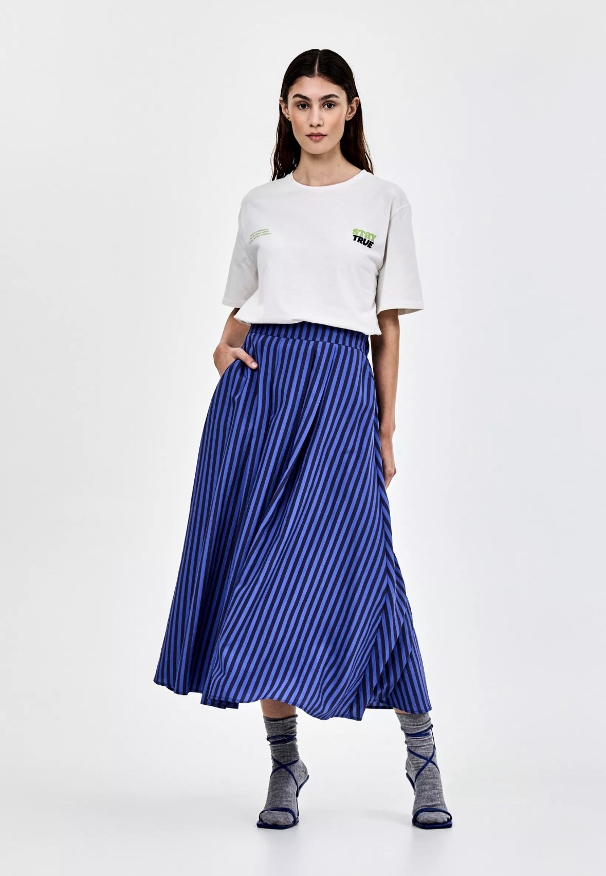 Falda de Cks diseñada en Bélgica. Tejido vaporoso y fino en tonos azules.