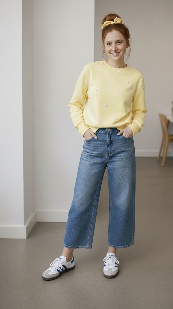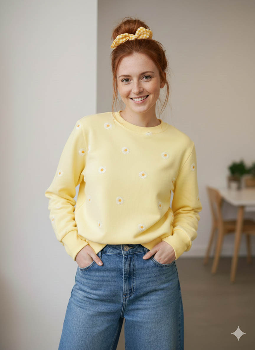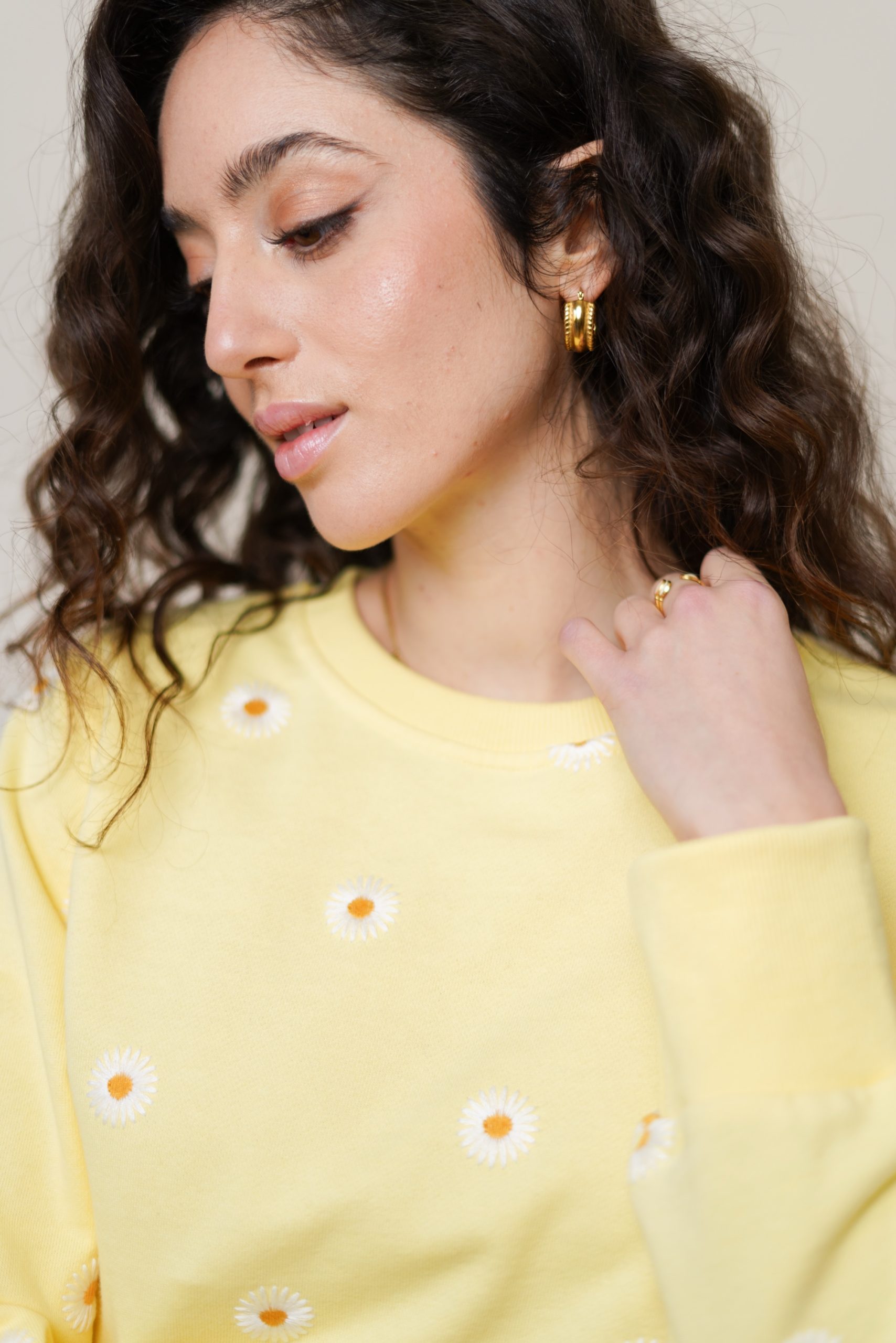 Sudadera de algodón con bordados de margarita. Corte clásico. Tallaje normal.