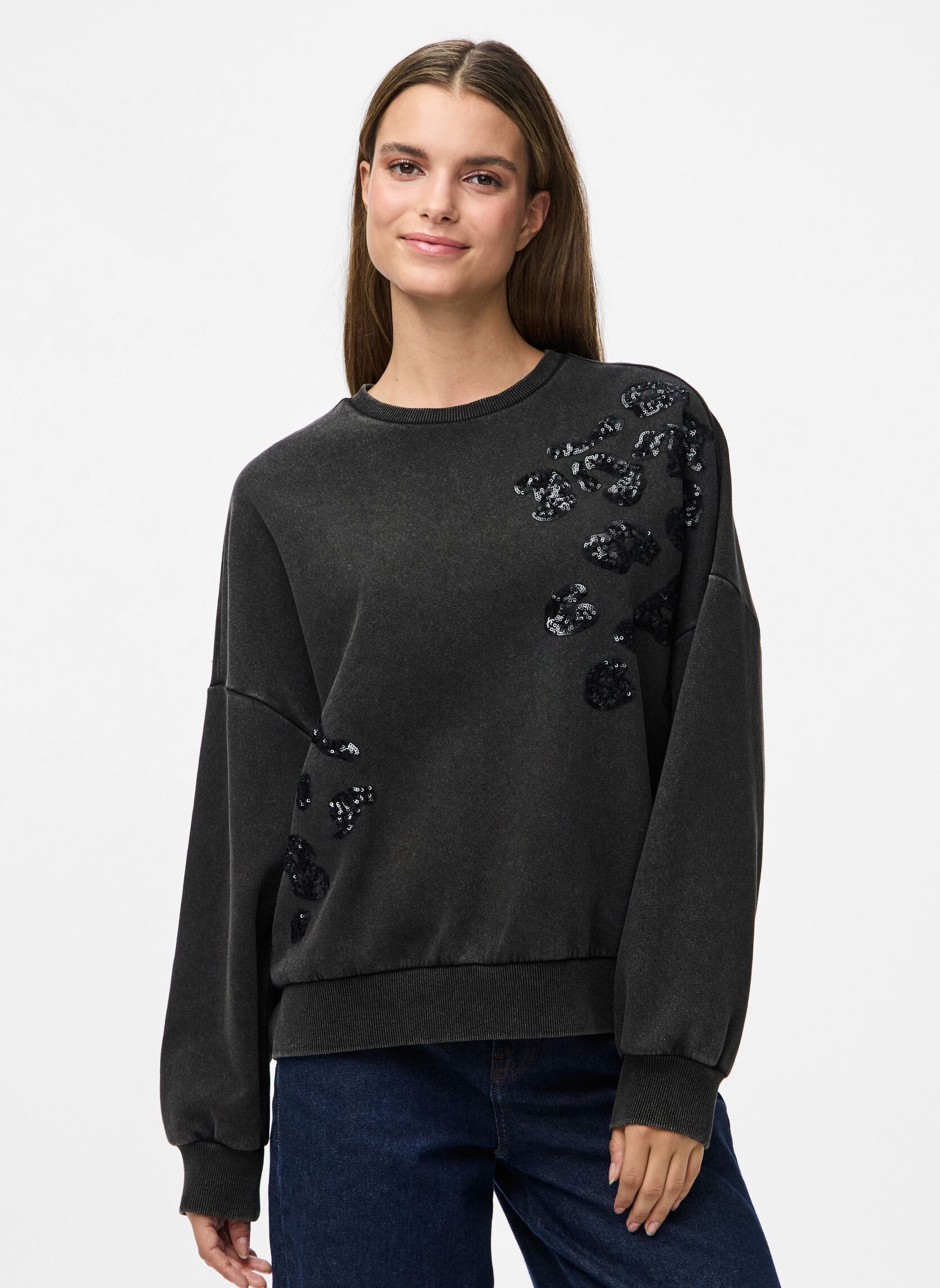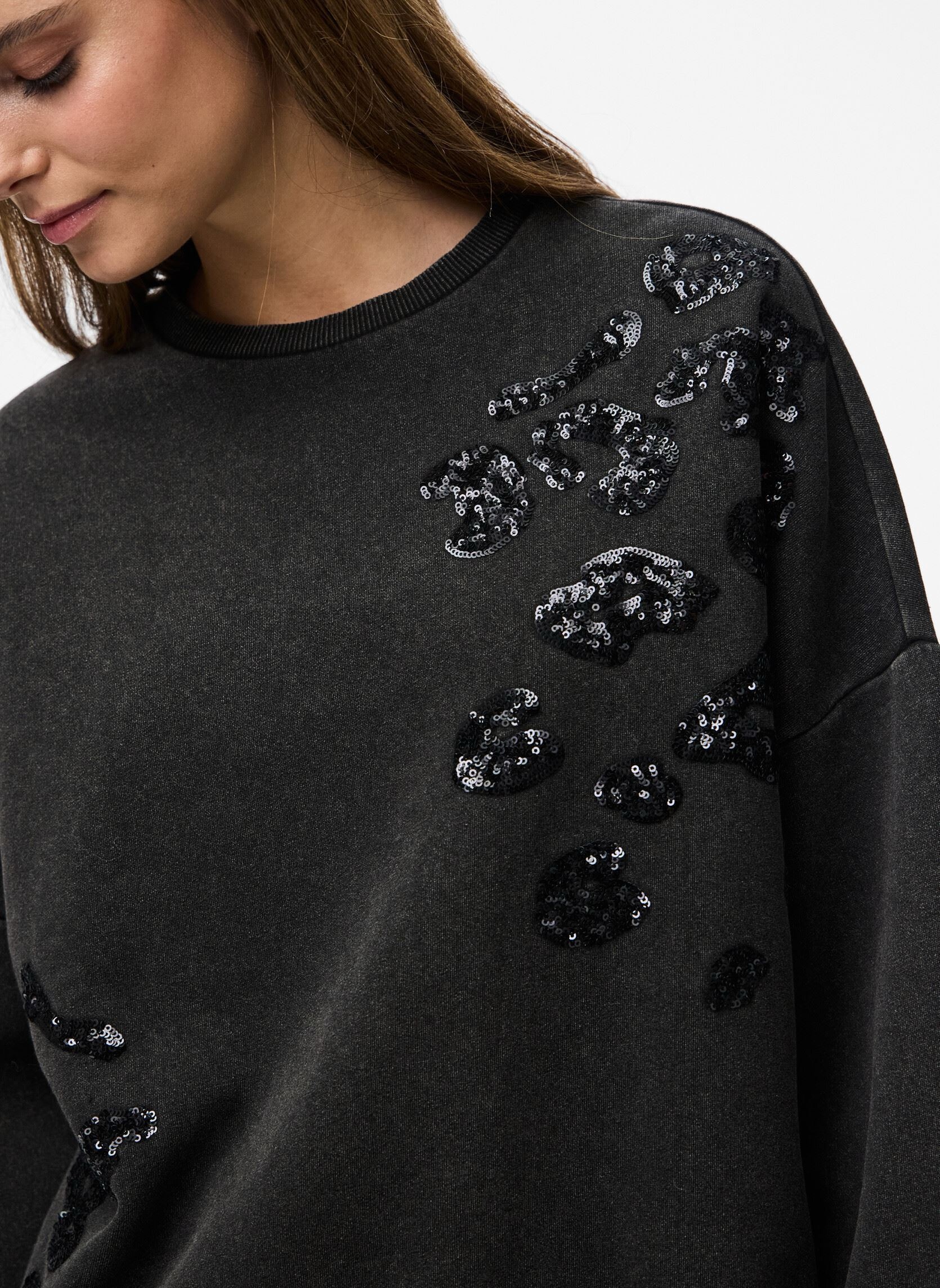 Sudadera de algodon de tacto suave con lentejuelas de adorno. Tallaje amplio.